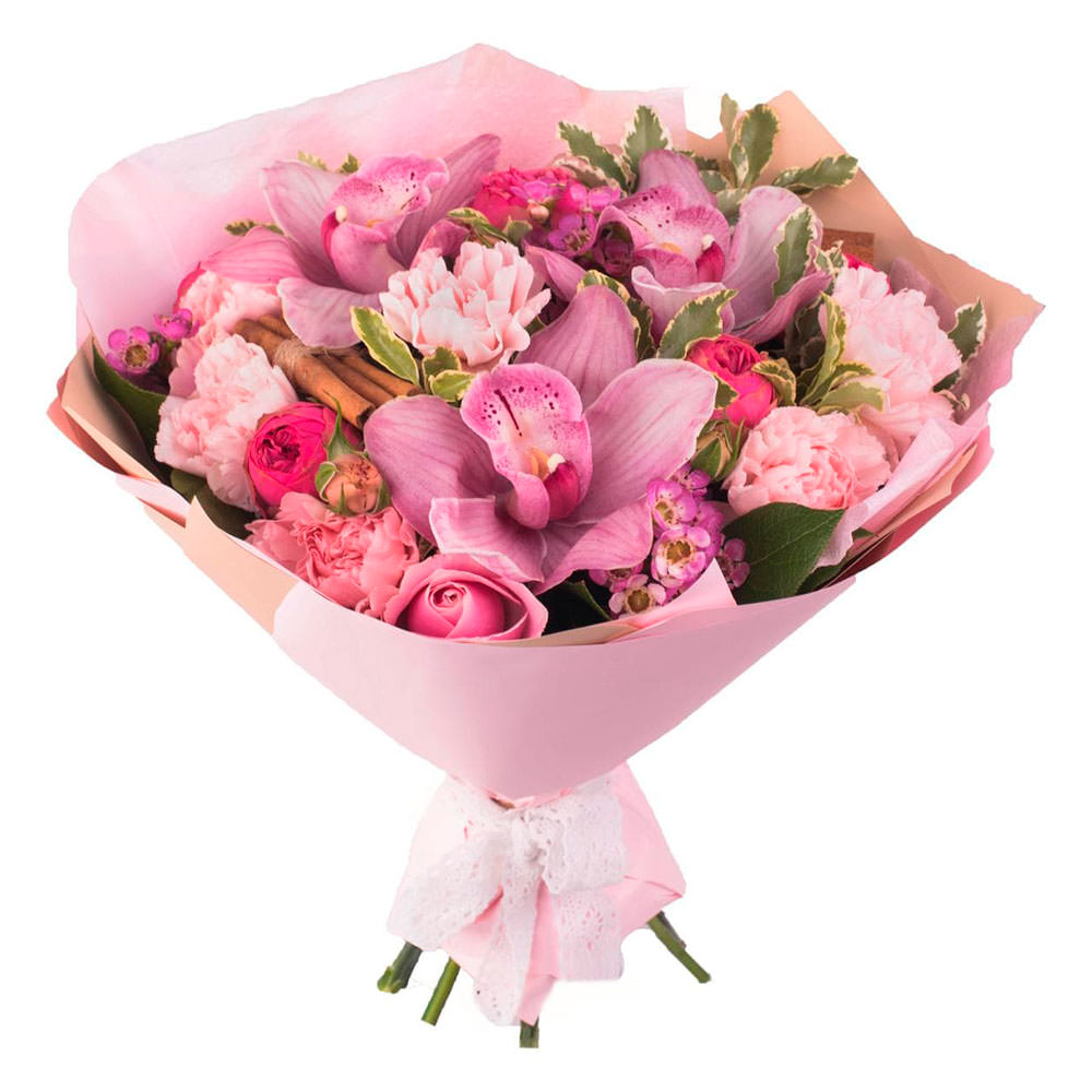 На фото представлен образец. Объем букета зависит от выбранного вами размера. Точное количество цветов и цветовую гамму вы можете уточнить у менеджера по телефону.